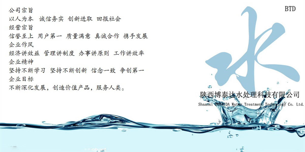 陜西博泰達(dá)水處理科技有限公司是西北一家集銷(xiāo)售、科研開(kāi)發(fā)、安裝和技術(shù)服務(wù)為一體的高新環(huán)??萍夹推髽I(yè)。公司以科技創(chuàng)新為先導(dǎo),全心致力于人類(lèi)環(huán)境保護(hù)和發(fā)展。以客戶(hù)滿(mǎn)意、打造完善服務(wù)為遵旨,為廣大用戶(hù)提供優(yōu)質(zhì)的水處理設(shè)備和空氣凈化系統(tǒng)。