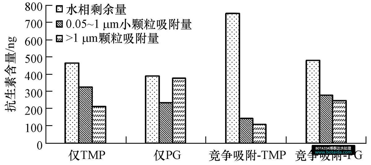整體上,甲氧芐啶與青霉素G二者互相抑制,青霉素G對(duì)甲氧芐啶的抑制作用更明顯,特別是對(duì)于大顆粒吸附能力來說.但是,甲氧芐啶的存在卻增強(qiáng)了小顆粒對(duì)青霉素G的吸附能力.