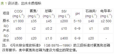 根據建設方提供的水量情況并適當考慮變化系數,設計處理規(guī)模為240 t/d,24 h連續(xù)運行,其中120 t回用于生產,另外120 t達到《污水綜合排放標準》(GB 8978—1996)三級標準后排放。