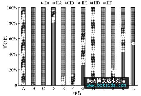 2)12個活性污泥樣品的系統(tǒng)發(fā)育分析也證實(shí)了Accumulibacter以Type II 為主,Type I少量存在.TypeII中以IIC、IID、IIA為主,IIB、IIF豐度偏低.
