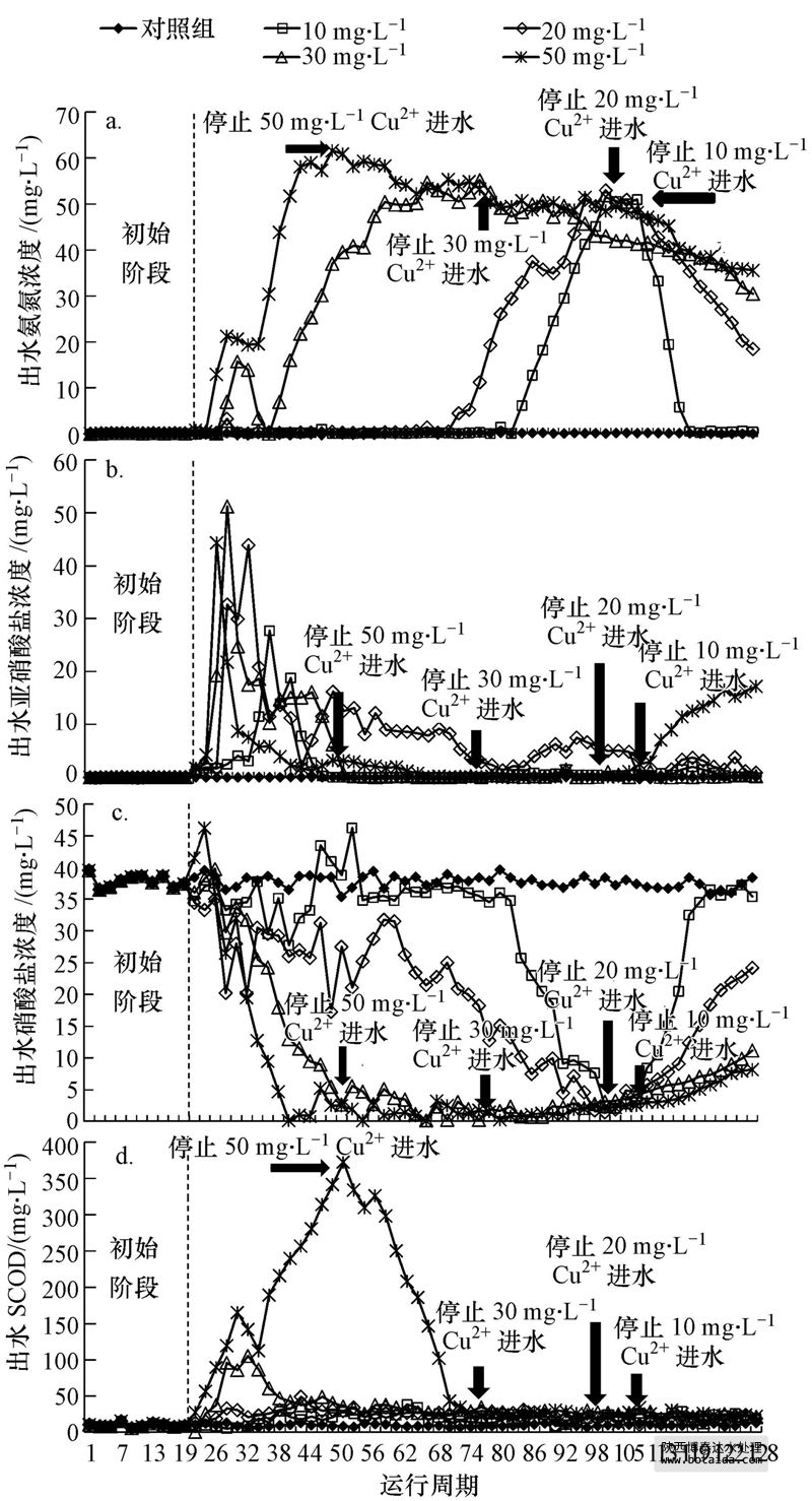 因此,本文主要采用間歇式活性污泥反應器(SBR),研究Cu2+持續(xù)負荷期間及結束后AOB和NOB硝化菌群活性的變化,通過檢測硝化效率、微生物活性、Cu分布特點等信息,探討Cu2+對生物硝化過程抑制的作用原理.