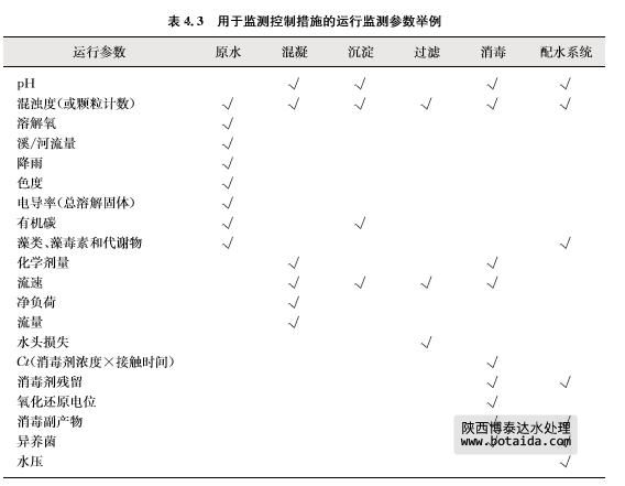 運行監(jiān)測包括參數(shù)測量或者觀測活動。所選定的運行監(jiān)測參數(shù)應(yīng)能反映每步控制措施 的有效性,能及時指示運行情況,并能很快地被測量,能及時采取適當(dāng)?shù)膽?yīng)對措施。像一些 可測量的變量,如余氯、 pH和渾濁度,或可觀察到的因子,諸如防蟲網(wǎng)的完整性。 腸道病原體和指示生物在運行監(jiān)測中應(yīng)用有限,因為處理和分析水樣所需時間太長,來 不及在供水之前對操作做出調(diào)整。