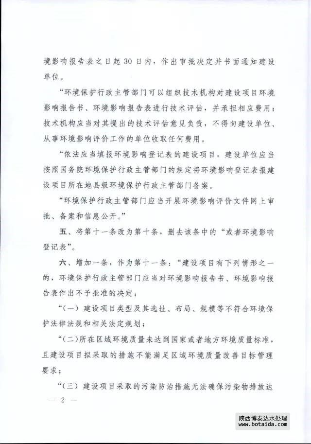 7月16日,國(guó)務(wù)院以國(guó)務(wù)院第682號(hào)令公布了《國(guó)務(wù)院關(guān)于修改〈建設(shè)項(xiàng)目環(huán)境保護(hù)管理?xiàng)l例〉的決定》,自2017年10月1日起施行。