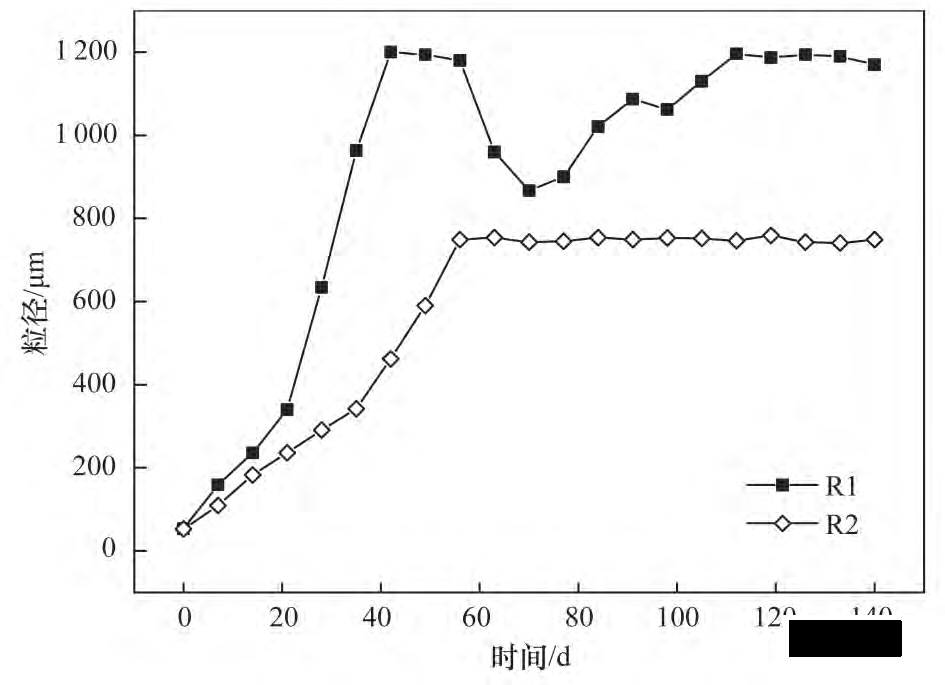 圖 2  R1 和 R2 運(yùn)行期間粒徑變化