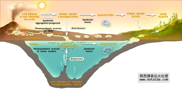 地球的年齡大約為46億年,地球上的海洋至少在38億年前就出現(xiàn)了,而且海洋中就有生命。至于陸地生命最早是什么時(shí)候產(chǎn)生的,目前仍然沒有定論,美國(guó)科學(xué)家在一些來自南非的巖石樣本中發(fā)現(xiàn)了細(xì)菌化石的有機(jī)物,時(shí)間定為大約在26億年前。
