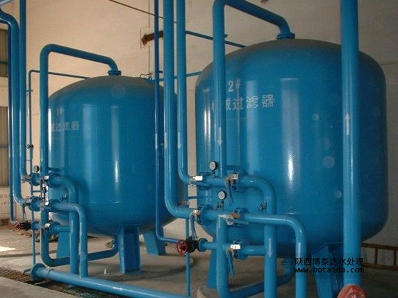 機械過濾器是根據(jù)系統(tǒng)總進水量來選擇過濾器的大小以及組合方式的(一臺機械過濾器不夠可選擇多個并聯(lián)使用以及備用的數(shù)量),機械過濾器內(nèi)的填料是由許多不同粒徑的精制石英砂嚴格按從大到小的次序配置而成,因而形成良好的石英砂級配。