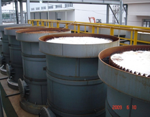 催化微電解是在不通電的情況下,利用微電解設(shè)備中填充的微電解填料產(chǎn)生“原電池”效應(yīng)對廢水進(jìn)行處理。當(dāng)通水后,在設(shè)備內(nèi)會形成無數(shù)的電位差達(dá)1.2V 的“原電池”。“原電池”以廢水做電解質(zhì),通過放電形成電流對廢水進(jìn)行電解氧化和還原處理,以達(dá)到降解有機(jī)污染物的目的。在處理過程中產(chǎn)生的新生態(tài)[.O H] 、[H] 、[O]、Fe2+ 、Fe3+等能與廢水中的許多組分發(fā)生氧化還原反應(yīng),比如能破壞有色廢水中的有色物質(zhì)的發(fā)色基團(tuán)或助色基團(tuán),甚至斷鏈,達(dá)到降解脫色的作用;生成的Fe2+ 進(jìn)一步氧化成Fe3 +,它們的水合物具有較強的吸附- 絮凝活性,特別是在加堿調(diào)pH 值后生成氫氧化亞鐵和氫氧化鐵膠體絮凝劑,它們的絮凝能力遠(yuǎn)遠(yuǎn)高于一般藥劑水解得到的氫氧化鐵膠體,能大量絮凝水體中分散的微小顆粒、金屬粒子及有機(jī)大分子。該工藝具有適用范圍廣、處理效果好、成本低廉、處理時間短、操作維護(hù)方便、電力消耗低等優(yōu)點,可廣泛應(yīng)用于工業(yè)廢水的預(yù)處理和深度處理中。應(yīng)用廢水種類:染料廢水、焦化廢水、醫(yī)藥廢水、農(nóng)藥廢水、樹脂廢水、助劑廢水、制革廢水、電鍍廢水、造紙廢水、淀粉廢水、大蒜廢水、垃圾滲濾液等工業(yè)類廢水。